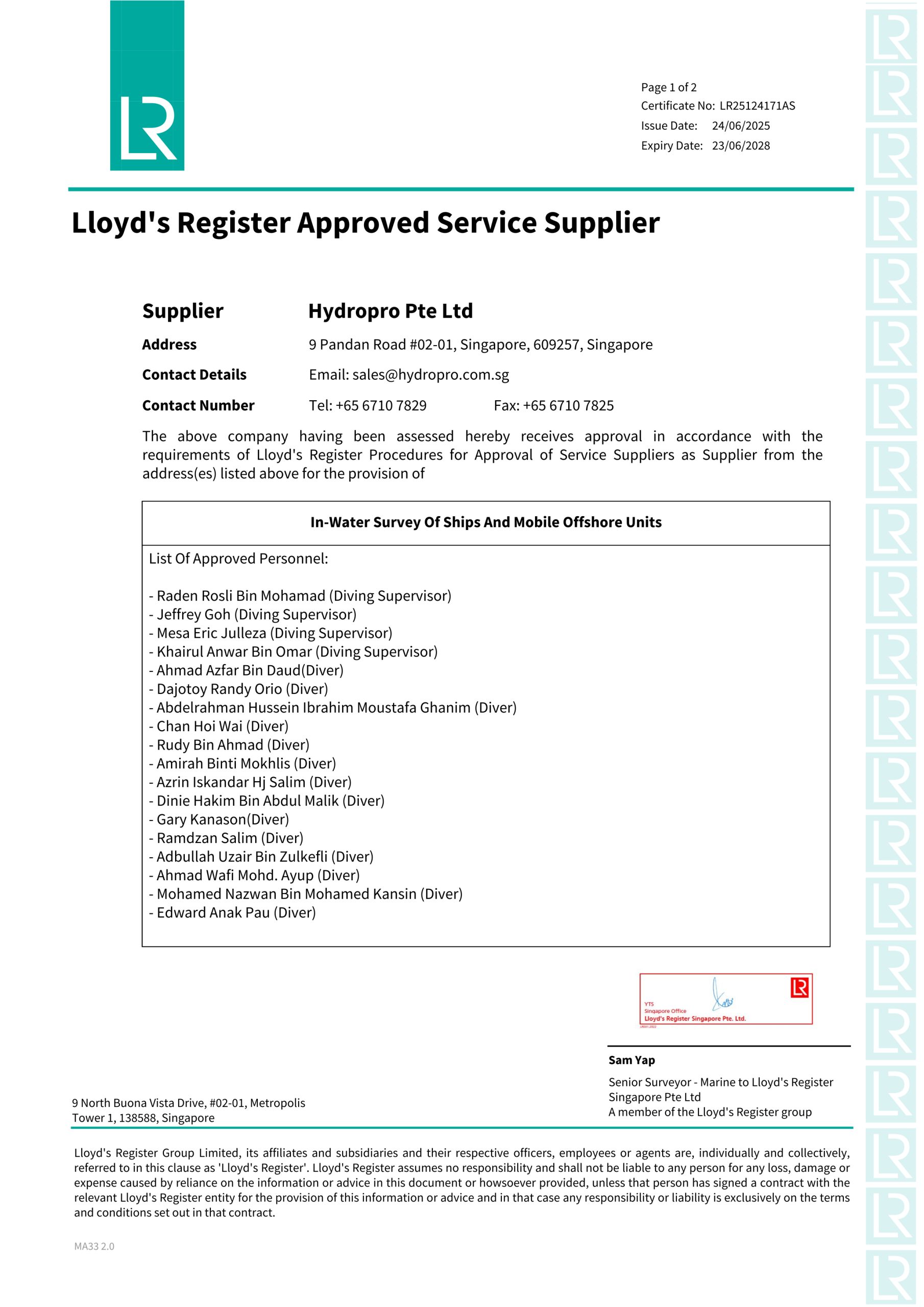 With a burning passion for commercial diving ignited by leisure diving as a hobby, Naqiah has since cemented her role as Singapore’s first-ever, and only, female commercial diver. She is a seasoned mariner and has been a cherished member of the Hydropro family since July 2018.